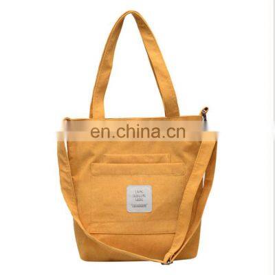 Product DescriptionSpecificationProduct TypeCasual shoulder bagMaterialCorduroysize34*7*34 cmColorMultiple colors availableStyleHandledPrinting TechnicsSilk screen/Heat transferFeatureEco-FriendlyOEM/ODMYESApplicationAdvertising/Shopping/Promotion/Marketing etc,Packing & DeliveryTo better ensure the safety of your goods, professional, environmentally friendly, convenient and efficient packaging services will be provided.Company ProfileFAQ1. Who are we?We are based in Henan, China, start from 2020,sell to North America(50.00%),Mid East(15.00%),Western Europe(14.00%),Southeast Asia(10.00%),Eastern Europe(3.00%),South Asia(3.00%),Africa(2.00%).2. How can we guarantee quality?Always a pre-production sample before mass production;Always final Inspection before shipment;3.What can you buy from us?Paper Box,Paper Bag,Printing Book,Paper Tags,Biodegradable Bag,Canvas Bag,Toilet paper,Thermal paper roll,etc.4. Why should you buy from us not from other suppliers?1) We have a professional team having rich experience in designing paper box, paper bag, and other paper products. 2)We can make samples according to the customer's requirements, which will be completed in 3-5 days.5. What services can we provide?Accepted Delivery Terms: FOB,CFR,CIF,EXW,DDP,Express Delivery;Accepted Payment Currency:USD,EUR,CNY;Accepted Payment Type: T/T,L/C,MoneyGram,Credit Card,PayPal,Western Union,Cash;Language Spoken:English,Chinese,Japanese