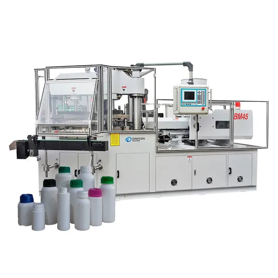 Dawson injection blow molding machine is equipped with professional injection system and precision control system, which can meet the requirements of high-speed opening and closing mold, high clamping force and uniform distribution of clamping force at each position of the mold. The three position rotary lifting system can rotate 120 ° to make the three positions of injection molding, blow molding and demoulding run continuously and smoothly. At the same time, due to the use of hydraulic drive linkage mechanism, the positioning of the machine is more accurate, the maintenance cost is lower, and it is more rapid and stable. The demoulding station cooperates with the conveyor belt to realize automatic demoulding, automatic counting and automatic packaging. The whole process avoids manual contact, so that the products produced by the machine can meet the stringent requirements in the field of medicine and health. our own engineers team, we have more then 18 years experience in this field.