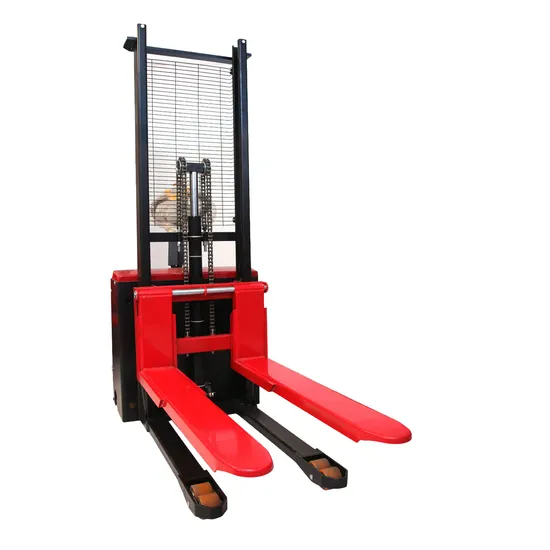 Product Description Manual and Electric Fork Lift Hydraulic Power Hand Pallet Stacker is a wonderful addition to material handling and shipping facilities. The positioner allows the user to transport heavy large rolls of material with ease.
