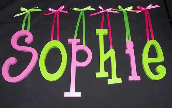 Please feel free to send me a message with any questions you may have. If you would like to see a typed sample of a particular name before you order, pictures of the different colors, anything of that nature, just let me know! And please feel free to send in pictures of our letters to let others see how well they look hanging in your special place!