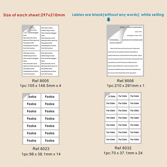 Foska High Quality Different Size A4 Printing Label