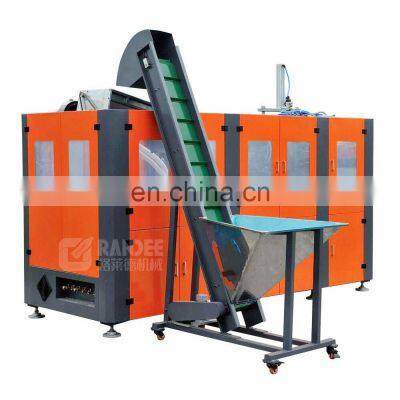 Automatic servo motor PET bottle blow moulding machineProduct Description Four servo motor system :1.Stretching is driven by servo motor 2. Mold's opening & closing is driven by servo motor 3. Slideway rotation in oven is driven by servo motor 4. Preform feeding is driven by servo motor Machine show 4 cavity mold Our engineer make 2D drawing for free Machine description:New Auto Preform Unscrambler SystemAdopts one-way preform-feeding structure and preform-separating by servo motor structure which solve the preformblock and abrasion problem.There are two photoelectric sensors to control preform-loading motorand preform-separating cylinder that will warn the operator to add thepreforms into the hopper when lacks preform instead of stopping the machine.New Heating SystemPerfect heating system design decrease power consumption. Special oven design helps power saving and easy maintain.Each lamp position and temperature can be adjusted.Cycle air-cooling system keeps the oven temperature constantly.The Application Of Servo System On Main TransmissionThe transmission adopts servomotor for positioning that can orientate the preform-heating base quickly, accurately and steadily when the machine starts and running.Servo Technology Innovation On Clamping System & StretchingAdopts servo motor to drive the two cranks to control the clamping system which can shorten the mold-clamping time and improve productivity, and also solve the swelling mold and big joint line problem with the effect of pressurize plate.Servo motor using for stretching to ensure the bottle blowing speed faster and more stable bottle quality.Easy To Change Bottle ShapeDrawer type mold structure design is easy for mold changing. Within one hour can change a mold on the condition of same bottleneck diameter.Intelligent Human-Machine InterfaceHuman-machine interface control, easy operate and monitor.Live production information supervise, auto record production data everydayFailure warning and troubleshooting. Main technical parameter:ModelGD-5000Clamping force480KNClamping stroke125mmMax.stretching stroke370mmBottom moving sttroke60mmNumber of cavity4 cavityTheoretical output5000BPH(500ML)Max.mould thickness300mmElectrical system Voltage standard380V 3P 50HZ or special orderNumber of heating zone4 sectionsTotal power(full loaded)15kwBottle specifications Max.bottle volume2000mlNeck diameter range38-50mmntainer diameter360mmntainer height380mmAir system Low air compressor1.0MPaHigh sir compressor3.0MPaDimension & height Blowing molding machine3.65*2.1*2.0mPreform auto loader1.5*1.5*2.2mNet weight3.8T Component listNoNameModelBrandCountry of origin1High pressure valve321H-35-2995PakerAmerica2Low pressure valve7321BAN00-DC24VPakerAmerica3Check valve9C800SPakerAmerica4Action solenoid valve AirTACTaiwan5Host powerNES-200-24VMEANWELLTaiwan6PLCFX1N-60MRMitsubishJapan7Touch screenTK6070IHWEINVIEWTaiwan8Standard cylinderSC100X135-SAirTACTaiwan9Thin cylinderSDAS25X43-BAirTACTaiwan10Pneumatic processing elementsGR20008-F1AirTACTaiwan11Swing cylindersDSR-25-180-PFESTOGermany12Quick exhaust valveSEU-3/8FESTOGermany13Proximity sensor AutonicsKorea14Photoelectric switch OPTEXJapan15Module SEMIKRONGermany16Ruby lampCR30-15DNHAICHUANGChinaCompany InformationOur teamFAQQ1: How to find suitable plastic bottle blow moulding machine or complete water production line?A1: Looking for beverage filling machine in www.grandeemachine.en.china.cn Q2: What's the capacity of plastic bottle moulding machine?A2: We have full automatic and semi automatic unit with 800BPH to 20000BPH for 5000ml plastic bottle Q3: How to choose the capacity of blowing machine for water production line?A3: If you want 600-800BPH for 5000ml water production line, you can choose semiautomatic blowing machine or automatic one cavity blowing machine,if you want 1000-1200BPH, you can choose automatic 2 cavity blowing machine, if you want more bigger capacity, you can send me inquiry, we can give you more professional technical solutions. Q4: Are you a trading company or a manufactory?A4: We are the manufacture of water/beverage filling machine and water treatment system over 10 years.We just not only sell drinking water machines and other related equipment , Quality is our culture. We have rich experienced engineers with technicians working team , providing good and after-sales service term , professional salesman terms . Q5: Do you have technical support after we purchased your machines?A5: We will arrange our professional technical to go aboard to your factory, they will help you and teach you how to install and maintenance the machines which you purchased. Or help you to fix machine when it has problems. Q6: If you buy our machines, can you offer us wear-out spare pats?A6: We provide our high quality machine 2 years guarantee , and we will also offer you 2 years wear-out spare parts for free. Once your machines broken or doesn't work within 2 years and you can't solve it, firstly, we will try to help you to find problems from your words description by phone or other communication tolls. Secondly, if the phone solutions still not work, our engineers will go to your factory to solve it. Meanwhile, they will teach you the related experiences for fixing.