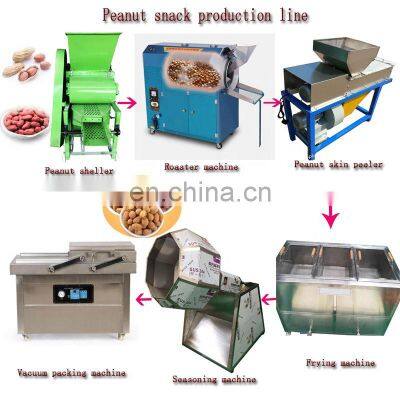 Raw material(peanuts) -- Peanut shelling-- Roasterpeanut --remove peanut red skin-fry the peanut-Seasoning-Packed peanuts