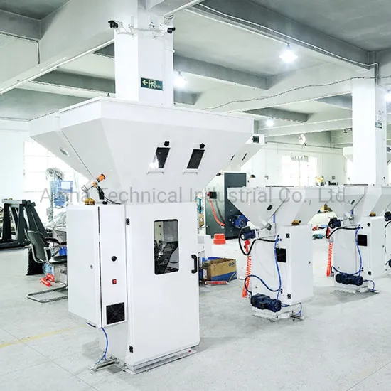 Gravimetric Blender Dosing and Mixing of Powder Polyethylene Granules With Muti-station Hopper Loader for Extrusion Laminating Machinery^