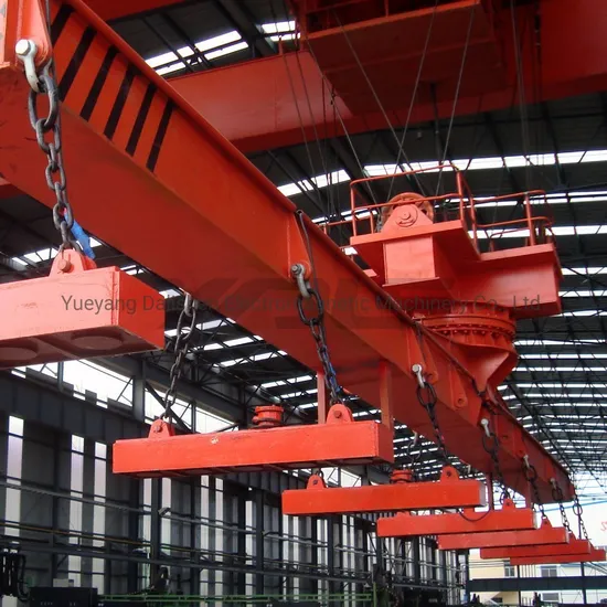 Steel Plate Magnet Lifter is specially design for lifting and transporting steel plates of medium-thickness. The lifting operation is safe, accurate and quick. Considering possible bending and deforming may affect safe transportation when lifting long steel plates, please use the combination of several electromagnets. As to medium-thickness steel plates(6mm-32mm),the space length of electromagnets is 3-4m,the space length of extension parts of both ends is half of the space length. According to different lifting pieces, the series can be divided into type 350 and type 400.Type 350 is suitable for medium-thickness plate factory, ship building factory, and machinery manufacturing factory, it adopts magnet regulating control method, and can lift one piece or certain pieces of steel plates of steel plate. Type 400 is suitable for transporting as many as possible pieces at a time and can design and manufacture high temperature type products used for lifting and transporting steel plate below 700ºC according to customers' requirements.