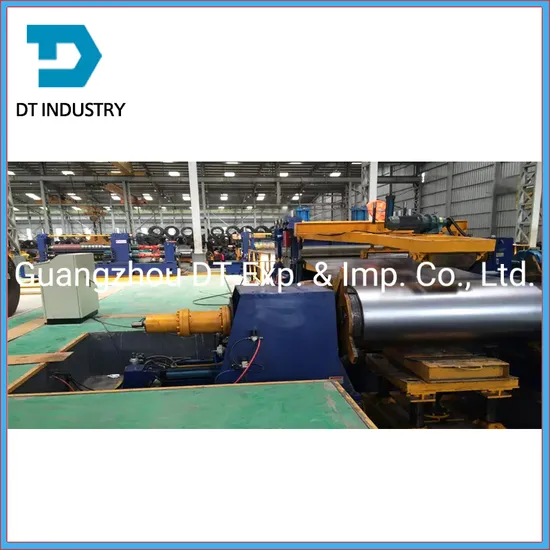 When the user steel coil thickness within 6mm, specification replacement frequency is not high, the monthly demand is not particularly large, DT INDUSTRY machinery research and development design of DTS60 low speed strip series to meet this demand. The production line has the main functions of unwinding, leveling, slitting, tension, winding and so on. The main working equipment consists of feeding trolley, uncoiler, leveling machine and power, slitting machine and power, waste edge receiving machine, tension machine, winding machine, auxiliary support, unloading device, hydraulic system, electrical system and so on.