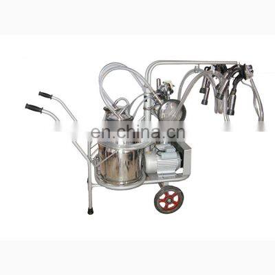 cow milking machine for transport milk Technical specification of cow milking machine for transport milk Power supply220V 240V 380V Power1.1 kwMaterialSS 304 milk bucket mirror polish inside and outsideBucket25LOperating vacuum degree0.04 - 0.05 MPa (adjustable)Pulsation Times60-80 times per minutePulsation rate60/40The number of milking cattle / hour20 - 24 cows per hourMoter speed 1440 rpm per minuteWorker needed when milkingonejjJVacuum pump capacity250 L per minute Application of pump cow milking machine for transport milka.It is suitable for all kinds of dairy farms and individual households, with movable operation, being convenient and flexible, and without space constraints.b. It is composed of trolley frame, electric motor, vacuum pump,pulsator, milk tube, milking cup group, milk bucket ,surge tank, adjustor, vacuum meter are integrated in a car.c. The portable milking machine enables you to milk 20-24 cows per hour. Therefore, hand milkers can triple their milking capacity and milk more cows within the same time. Reduced milking time means you can expand your herd size, which means more profit for you. Advantages of pump cow milking machine for transport milk The mobility of milking machine is ideal for todays bucket milkers.1. Easy to manoeuvre2. Robust construction means easy maintenance.3. Large heavy duty wheels-easy to be moved around.4. Few and robust parts-low service and maintenance. Features of pump cow milking machine for transport milk Unique design, easy operation, easy maintenance, stable vacuum stable, low noise, stable pulsating frequency, small vacuum fluctuations, and soft milking front and rear in turn for the protective effect so that can increase the yield. So, only one operator will be qualified for the machine operation and maintenance.