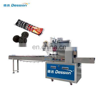 Autoamtic BBQ Shisha Charcoal Packing Machine For Pillow Bag Charcoal PackagingMachine IntroductionPackaging ApplicationAutomatic flow packing machine is a widely used packing machine. Suitable for all kinds of product packaging. Including medicalsupplies, vegetables and meat, baked bread, snacks and candy, daily necessities, hardware accessories, etc.Packing EffectThe effect after packaging is back-seal bag. According to demand, other devices can be customized or upgraded to meet other models. For example, pillow bag with hole, bag with label, gusset bag, etc.Machine Structure and ParametersMachine Characteristics1. Double frequency conversion control, the bag length canbe set and cut, no need to adjust the air, one step in place, saving time and film.2. Man-machine interface, parameter setting is convenient and quick.3. Fault self-recognize function, fault display at a glance.4. High-sensitivity photoelectric eye color tracking, digital input sealing position, make sealing position more accurate.5. Temperature independent PID control, better suitable for various packaging materials.6. Positioning stop function, no sticky kuife, no waste film.7. The transmission system is simple, the work is more reliable, and maintenance is more convenient.8. All control is implemented by software, which is convenient for function adjustment and technical upgrade, and never lags behind.ModelDS-250BDS-320BDS-350BDS-400BDS-450DDS-600DFilm Width(mm)Max.250Max.320Max.350Max.400Max.450Max.600Bag Length(mm)65~280130~320120~450130~450Bag width(mm)30~11050~15050~16050~19060~21060~280Products Height(mm)Max.40Max.45Max.110Packing Speed(bag/min)40~23030~18030~150Machine Power220V / 380V, 50/60HZ,2.4KWMachine Size(L*W*H, mm)3770*670*14503770*720*14503770*720*14504020*770*14503990*900*14683990*1000*1468Machine Weight800KG900KG1050KGDetails ImagesMachine WorkflowThis machine is easy to operate. Just set the parameters on the screen, and then you can start the machine. Put the product on the conveyor belt, the machine will automatically pull the film, the bag is formed, sealed, and finally the bag is cut.Multilingual touch screenThe machine supports various language customization, easy to operate.High sensitivity eye sensorThe eye sensor automatically senses the color code to ensure accurate and beautiful packaging effects.Replaceable bag formerWhen you want to change the bag width, you only need to change a different size bag fromer.Electronic control componentUse Panasonic PLC and frequency converter to ensure the stable operation of the machine.Related ProductsWhy Choose UsVR1. Professional and Strong TeamDession has a professional team that can provide customers with various packaging solutions. After fully understanding the customer's needs, we provide the most suitable packaging solution to the customer. Then start the production of the machine. We have a strong production and processing capacity, from the customized processing of accessories to the assembly and debugging ofthe machine. Finally, it is packaged and shipped, and it only takes a week to complete.2. Excellent transportation serviceAccording to the needs of customers, we can provide sea transportation, air transportation, and land transportation services, so that you can get the machine as soon as possible. Provide door-to-door transportation services.3. Timely and effective after-sales serviceChoosing us is not only buying a machine, but also our professional and timely service. 1. When the machine is delivered, we will attach a video of the installation and operation of the machine, so that you can use the machine quickly. 2. All electrical appliances of our machines have a one-year warranty, and we will replace them if they fail. 3. When your machine fails, we will have professional engineers to provide professional online after-sales service to help you solve the problem. 4. If the problem cannot be solved online, we will arrange an engineer to repair it on site within a week.Buyer FeedbackWe have 8 years of experience in foreign trade and export, and now our customers have spread to 90 countries all over the world. With our high-quality machines and professional services, we have won unanimous praise from our customers.Company Profile Dession a leading manufacturer of Packaging machine and supporting facilities, which has successfully developed more than 80 kinds of packaging machines. Dession Packaging Machine has widely applied for different fields throughout the world, such as food/ industrial food, medicines, hotel supplies, disposable goods, rubber goods, daily appliances, hardware fittings, sporting goods, toys etc. Dession has more than 8000 square meters of production plants, 5 production workshops and a parts processing workshop, including small vertical machine production workshops, vertical machine production workshops, pillow machine production workshops, cartoning machine production workshop and filling machine production workshop.FAQQ1:Do you have manual or operation video for us to know more about the machine? Yes, not only manual or operation video, 3D drawing also available to make as per your design,also the video we can make of testing the material from our packaging machine if your packing goods easier for us to find from our local market. Q2:How can I trust you for the first time business ?Please note our above business license and certificate. And if you don't trust us, then we can use Alibaba trade assurance service, guarantee your money, and guarantee your machine's on-time delivery and machine quality.Q3:Is engineer available to serve oversea?Yes, but the travel fee is paid by you. So actually to save your cost, we will send you a video of full details machine installation and assist you till the end.Q4:How can we make sure about the machine quality after we put the order?Before delivery, we will send you the pictures and videos for you to check the quality, and also you can arrange for quality checking by yourself or b