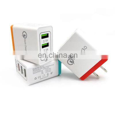 High Quality US Standard QC3.0 3 USB Quick Charge Wall Plug Smart USB Charger for Phone