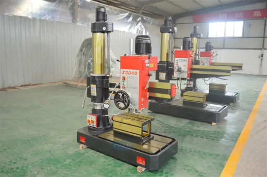 Main structure: the radial drilling machine is mainly composed of the base, inner column, outer column, rocker arm, spindle box and workbench.Main features of mechanical radial drilling machine.