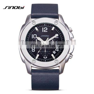 SINOBI Chronograph Men's Watch Calendar Date Function Luminous Pointer Index Soft Leather Band Stop Watch Quartz Movement S9653G 1. What's your MOQ? Can I mix styles and colors?A: For watch, MOQ is 500pcs/model for OEM & ODM, 300 pc/model of our brand SINOBI. We can mix colors for you, 300pcs/color. Usually we don't accept mix styles. But for the first order, and we see your sincerity to cooperate, we will try to accept 300pcs/style,but the unit price will be higher than the unit price of 500pcs.2. Can we print our own logo?A: Yes, we can print logo free for you, we can print your logo and design on the band, dial, buckle, back, case and other place, usually the color of the logo is one color.3.What about the warranty?A: 12 months movement warranty, and we are very confident with our products, and we will pack it very well, so usually you will receive your goods in good condition. But to avoid any subsequent trouble regarding quality issue, we suggest you check the watches once you receive them, and let us know if there is any damaged ones, so that we can deal with it accordingly.4.Do you offer Drop shipping (Blind shipping )?Yes , we offer Drop shipping/Blind shipping,we haven enough experience in drop shipping ,every day we have many watches to send out many countries for Drop shipping.5. Do you do custom watch boxes?Yes, we do custom watch boxes. We can follow your requirement to make the boxes ,or you can select our boxes with your logo.6. What movement do you usually use in your watches?We usually use Japanese movement ,Swiss movement, and Chinese movement, for example Seiko,Citizen,Miyota,Ronda ,Kingstar we use most.7.What is your packaging? 1.Not over 5 pcs order ,each watch will be put into a poly bag then packaging well into a safe white bag(as below picture)2.Over 10 pcs order ,each watch will be put into a poly bag then all put into a white bag, packaging well with a safe bag outside.(as below picture)For OEM/ ODM Products packaging:Normal packaging 1.Each piece will be put into a poly bag;2.20 pieces into a white box;3.10 white boxes into a 39*30*33cm carton; Special packaging: As per your request. **Note: Only Normal packaging service is free.