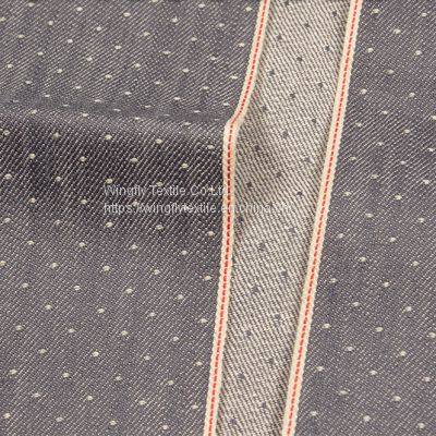 2.Custom/Newly Produce raw selvedge denim:Normally newly produce or custom order is required 3000yards,while WingFly offers some black selvedge denim and indigo selvedge denim in small minimum order quantity to custom,for the one Warp Yarn Red Core Selvedge Denim 800yards+ is ok to produce,and so on some other raw indigo denim 2000yards ok newly produce,for example red selvedge denim fabric.