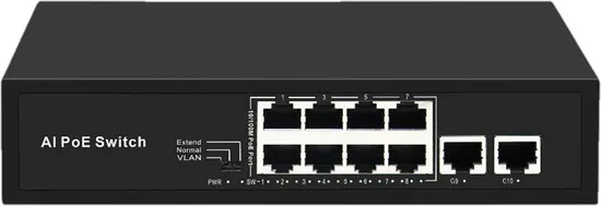 Main Features: Product Description: 8+2 PoE Port: 8 Port 10/100Mbps Uplink Port: 2 Port 10/100Mbps PoE Transmission Distance: 0-100m/250m (Selected by switch) Built-in Power Supply: yes Watt: 96Watt Input: 100-240V AC 50/60Hz VLAN: yes Watchdog: yes Datasheet