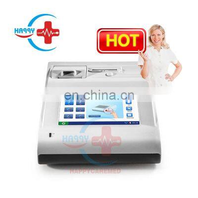 HC-B003B Blood gas and Chemistry Analysis System/Portable blood gas analyzer/Electrolyte analyzer Product DescriptionFeatures for HC-B003B Blood gas and Chemistry Analysis System/Portable blood gas analyzer/Electrolyte analyzer : ThroughputResults in 1 minute after sample aspirationSample volume140μlQuality control3 or 5 levels QC, External electronic simulatorDisplay7-inch color LCD Display, 800*480Interface4 x USB 2.0 host, 1 x RS232, WLANInput deviceTouch screen and barcode scannerPower supply100~240VAC, 50/60HzBattery5000mAh rechargeable lithium-ion battery, 50 samples continuous testingDimensions (W*H*D)4 x USB 2.0 host, 1 x RS232, WLANWeight3.65kgOperation Environment10 ℃-31 ℃; %RH: 25%-80%; 70 -106.6 KPaParameterReportable RangeResolutionMeasurement methodpH (pH units)6.5 – 8.00.001Potentiometric sensorpO 2 (mmHg)10 – 7000.1Amperometric sensorpCO 2 (mmHg)10 – 1500.1Potentiometric sensorNa (mmol/L)100 – 1800.1Potentiometric sensorK (mmol/L)2.0 – 9.00.01Potentiometric sensorCa (mmol/L)0.25 – 2.50.01Potentiometric sensorCl (mmol/L)65 – 1400.1Potentiometric sensorGlu (mg/dL or mmol/L)20 – 700/1.1 – 38.91/0.1Amperometric sensorLac (mg/dL or mmol/L)2.7 – 180.2/0.3 -200.1/0.01Amperometric sensorHct (%PCV or Fraction)10 – 75 /0.10 – 0.751%/0.01Conductance sensor Packaging & Shipping Company Information Our Services FAQ1. How to place order of HC-B003B Blood gas and Chemistry Analysis System/Portable blood gas analyzer/Electrolyte analyzer?A: Firstly we confirm product details and then send the Proforma Invoice, You make payment to us through Alibaba Trade Assurance or T/T, Western Union or MoneyGram, after we confirm your payment then ship the product to you once finished production. 2. For HC-B003B Blood gas and Chemistry Analysis System/Portable blood gas analyzer product, What’s the minimum order quantity (MOQ)?A: For disposable material,We have our own MOQ,For our HC-B003B Blood gas and Chemistry Analysis System/Portable blood gas analyzer/Electrolyte analyzer, our MOQ:1pc, 3. What is your warranty?A: For most products the warranty is for 12 months, some products we provide 18 months warranty. For HC-B003B Blood gas and Chemistry Analysis System/Portable blood gas analyzer/Electrolyte analyzer, we provide 12 months warranty.
