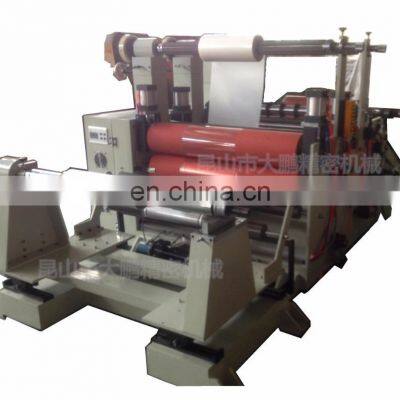 Plastic Heating Film Hot Melt Laminating Machine Funcional characteristics: 1.High precision and high sensitivity hot laminating machine.2.3" inflatable unwind and rewind shaft.3.Magnetic powder control the tension. 4.Ultrasonic rectification system to make the feeding material in line.5.Control panel control the degree the tension the meter and the speed Purpose: It is applicable for the laminating of industrial adhesive tape, cellophane tape, protective film, copper foil, aluminum foil, OPP, PE, PVC, sheet, cloth, etc. This mahcine is widely used in the industries such as printing, packing, electronics, leather, clothes making, plastic, etc. Main technical parameters:ModelDP-1000DP-1600Max feeding width10001600mmTotal power1.5KW3KWSpeed60m/min30m/minUnwinding diameter800mm800mmRewinding diameter700mm800mmVoltage220V 50HZ220V 50HZ