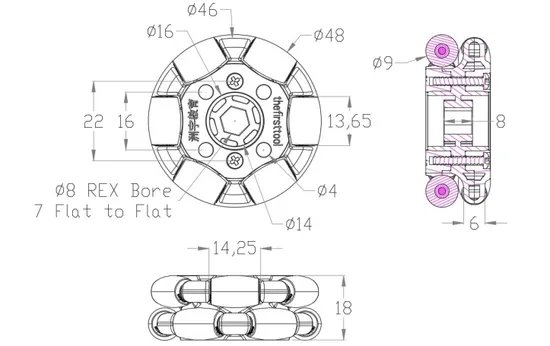 Series Omni Wheel (8mm REX™ Bore, 48mm Diameter, 50A Durometer) Applicable Ftc/Frc/Rev/Tetrix/Gobilda/Weighing Indicator Building Match Competition Stem