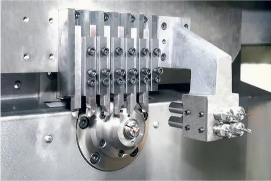 Multiple tool slots for enhanced versatility, enablingrapid tool exchange. Primarily designed toprocess various super slender parts with ease. Thehigh-performancepower headsatisfies both turning andmilling complex processes (theoptionallivehead can be selected).d). Efficient design layoutwith compact dimensionsto save space.