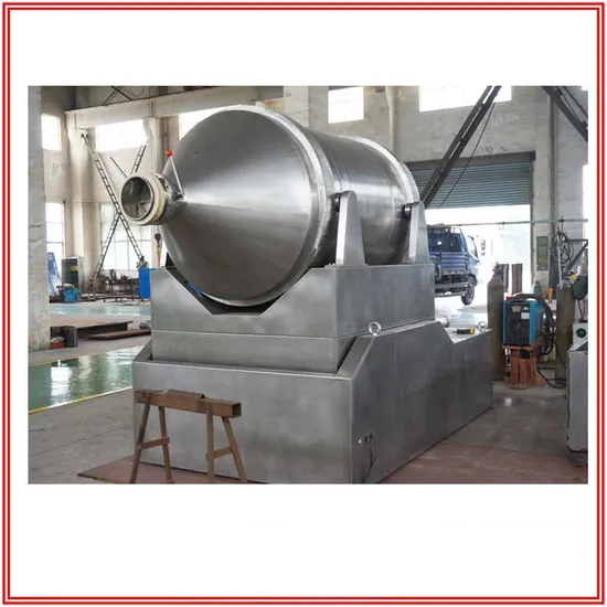 The Three Dimensional Mixer barrel for charging the materials is driven by the driving shaft. The barrel body carries on the repeated level movement, rotation, turning and other complex movements so that the materials will carry out the three dimensions and complex movements along the barrel body so as to realize the various movements of the materials. Through disseminating, gathering, agglomerating and mixing to realize uniform mixing.