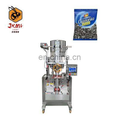 Factory direct sales small vertical granule packaging machine melon seed granule packaging machine reasonable structureProducts DescriptionApplication>What can this machine pack?Fill free flowing grains, pulses, seeds, sugarsalt, coffee beans, maize, nuts, candies, dried fruits, snacks, pet food and many more.If you need other bag types, we can provide the machine you need, please click to contact me. Machine InformationThe machine is equipped with PLC, inverter, transformer and other electrical components to ensure the stable operation of the machine and reduce the failure rate.Machine electrical components can be customized and upgraded according to customer needs. Choose from Schneider, Delta, ,Weinview, etc.JK-280AFilling Range3~100 gMmeasuring TypeMeasuring cup volume measurementPacking Speed30-60 bags/minBag Width15~130 mmBag Length30~170 mmSealing TypeBack sealing / 3 sides sealing / 4 sides sealingMachine Weight400 KGMachine Size(L*W*H)740*940*1750 mmMachine Power220V,50HZ,1.4KWMain Features1. The section where the material contact is stainless steel as the body of machine is optional for complete or partial stainless steel and all out equipments have passed the CE Standard.2. Optional English or other languages screen display, easy and simple operation. 3. High-sensitivity photoelectric color tracing and digital input of cutting position get more accuracy.4. Packaging speed and length of bags can be set to some extent without further adjustment and parts changing packaging speed and length of bags can be set to some extent without further adjustment and parts changing. 5. Bag-making, filling, sealing, cutting, counting can be achieved automatically and straightly. 6. Bag-making equipment can be changed according to specific requirement of customers and products.Optional DevicesDepending on your needs, you can choose to add the following configuration. For example date printer, linking bag device, gas-filled device, easy tearing device and hole device.Machine Working Process1st step: Setting the parameters you want by touch screen.2nd step: Put the material into the stainless steel hopper.3rd step: The measurement parts will measure the weight of each bag automatically.4th step: The bag former will make the bag automatically.5th step: The horizontal and vertical cutter device will seal the middleand of the bag.6th step: You will get the nicely paper or plastic bag type.Why Choose UsJIKE BEE MACHINERY has a professional team to provide customers with various packaging solutions. Fully understanding the needs of customers,engineers design the most suitable solution. We have our own processing and assembly workshop and quality inspection and debugging process to ensure the quality of the machine. After acceptance by the customer, they are packed in international standard wooden cases and shipped.Company ProfileFoshan Jike Bee Automation Equipment Co., Ltd. is a manufacturer of automatic packaging equipment.We are a production-oriented enterprises focused on product innovation, factory direct sales and perfect after-sales service in one.The automatic packaging equipment for granule, powder, liquid and sauce produced by the Jason company is at the advanced level of the industry,it can be customized production automatic material packaging line for all kinds of products .Mainly applicable to: food, hardware, drugs, daily chemicals, pesticides, fruits and vegetables, cosmetics, other industries.The company has its own patent and product technical certification, which can bring customers high quality equipment and worthy of customer trust.Customer PhotosOur customers have covered more than 80 countries around the world.And give us unanimous praise.CertificationsFAQQ1:Do you have manual or operation video for us to know more about the machine? Yes, not only manual or operation video, 3D drawing also available to make as per your design,also the video we can make of testing the material from our packaging machine if your packing goods easier for us to find from our local market. Q2:How can I trust you for the first time business ?Please note our above business license and certificate. And if you don't trust us, then we can use Alibaba trade assurance service, guarantee your money, and guarantee your machine's on-time delivery and machine quality.Q3:Is engineer available to serve oversea?Yes, but the travel fee is paid by you. So actually to save your cost, we will send you a video of full details machine installation and assist you till the end.Q4:How can we make sure about the machine quality after we put the order?Before delivery, we will send you the pictures and videos for you to check the quality, and also you can arrange for quality checking by yourself or by your contacts in China.Q5:Will you provides the door to door service?Yes. Please offer us your final destination, we will check with our agent to see if it available, and most of the area is ok for us to clearing and sending in your countries.