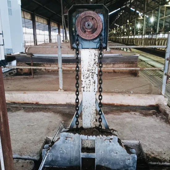 The whole machine components: motor reducer, drive unit assembly, corner system, transmission chain, manure scraper, control system, etc., the working principle is that the drive unit drags the scraper through the chain to carry out a reciprocating movement, the scraper moves forward when the manure is cleared, and the manure is not cleared when the scraper is retreated. It is suitable for manure road one-way distance > 120 m barn environment.