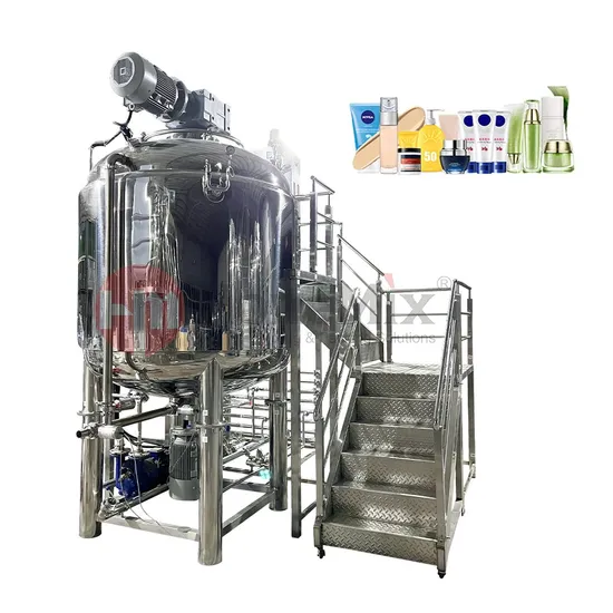 Vacuum Emulsifying Mixer consists of main pot, water/ oil tank, HMI control system, homogenizer, mixing system, heating & cooling system, vacuum system.