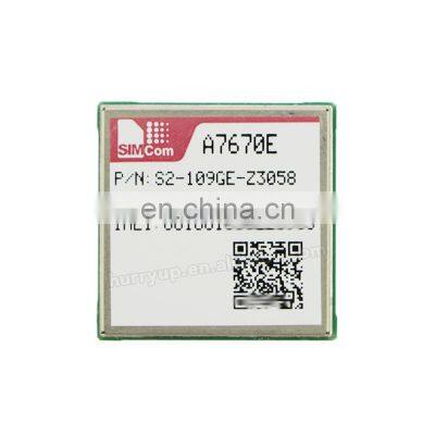Description SIMCom A7670XThe A7670 series is the LTE Cat 1 module which supportswireless communication modes of LTE-TDD/LTE-FDD/GSM/GPRS/EDGE. It supports maximum 10Mbps downlinkrate and 5Mbps uplink rate.The A7670 series adopts LGA form factor and iscompatible with SIM7000/SIM7070 series(NB/Cat Mmodules), and SIM800A/SIM800F(2G modules), whichenables smooth migration from 2G/NB/Cat M products toLTE Cat 1 products, and greatly facilitates morecompatible product design for the customer needs.The A7670 series supports multiple built-in networkprotocols, supports drivers for main operation systems(USB driver for Windows, Linux and Android etc.) andsoftware function, AT commands are compatible withSIM7500/SIM7600 series modules. Meanwhile the A7670series integrates main industrial standard interfaces, withpowerful expansibility, including abundant interfaces suchas UART, USB, I2C, GPIO, which is suitable for main IOTapplications such as telematics, surveillance devices, POS,industrial routers, and remote diagnostics etc.Product Advantages- Small size LTE Cat 1 module- LGA form factor with abundant interfaces- Suitable for LTE and GSM networks- Abundant software functions: FOTA, LBS, SSL- The form factor of A7670 series are compatible with the SIM7000/SIM7070 seriesProductA7670CA7670EA7670SAForm factorLGALGALGADimensions(mm)24.0*24.0*2.324.0*24.0*2.324.0*24.0*2.3Frequency BandsLTE-FDDB1/B3/B5/B8B1/B3/B5/B7/B8/B20B1/B2/B3/B4/B5/B7/B8/B28/B66LTE-TDDB34/B38/B39/B40/B41GSM900/1800MHz900/1800MHz850/900/1800/1900MHzTemperature GNSS-40℃ ~ +85℃-40℃ ~ +85℃-40℃ ~ +85℃Electrical FeaturesSupply Voltage Range(V)3.4~ 4.23.4~ 4.23.4~ 4.2Power Consumption (mA)LTE3.83.83.8GSM,BS_PA_MFRMS=23.53.53.5Data TransferLTE(Mbps)10(DL)/5(UL)10(DL)/5(UL)10(DL)/5(UL)GPRS/EDGE(Kbps)236.8(DL)/236.8(UL)236.8(DL)/236.8(UL)236.8(DL)/236.8(UL)Software FeaturesProtocolTCP/IP/IPV4/IPV6/Multi-PDP/FTP/ FTPS /HTTP/HTTPS/DNSTCP/IP/IPV4/IPV6/Multi-PDP/FTP/ FTPS /HTTP/HTTPS/DNSTCP/IP/IPV4/IPV6/Multi-PDP/FTP/ FTPS /HTTP/HTTPS/DNSTLS●●●File System●●●Audio Record/PlayoooTTSoooLBS●●●FOTA●●●Android RILAndroid 5.0/6.0/7.0/8.0/9.0Android 5.0/6.0/7.0/8.0/9.0Android 5.0/6.0/7.0/8.0/9.0USB DriverMicrosoft Windows 7/8/10 Linux/AndroidMicrosoft Windows 7/8/10 Linux/AndroidMicrosoft Windows 7/8/10 Linux/AndroidWWAN (RNDIS)●●●ECM●●●Embedded AToooFirmware UpgradeUSB/FOTAUSB/FOTAUSB/FOTAInterfacesSIM Card1.8V/3.0V1.8V/3.0V1.8V/3.0VUART●●●USB●●●PCMoooADC●●●GPIO●●●I2C●●●CertificationCertificationRoHSREACHCCCCTASRRCMobileUnicomTelecomRoHSREACHCE(RED)RoHSREACHRCMCE(RED)OCD(Anatel)FCCWhy Choose UsFAQQ1. What is the minimum order quantity for your products?A1. Minimum order quantity starts from ONE piece.Q2. What's the quality of your products?A2. We have professional QA/QC team to ensure the quality before shipment. We provide 1 year warranty for all the new and original products.Q3. Is this product free of shipping or free samples?A3. Regularly the sample and shipping cost will be at the buyer's account. But in specific case, we may take these costs. Please kindly check with us the details by email. Thank you.All Categories4G 5G ModuleGPS ReceiverGPS AntennaGSM/LTE/WiFi AntennaGSM/LTE+GPS AntennaGNSS/GPS Module2G/3G/4G ModemGPS TrackerRF Coaxial / ConnectorSIMCard HolderSensorIC