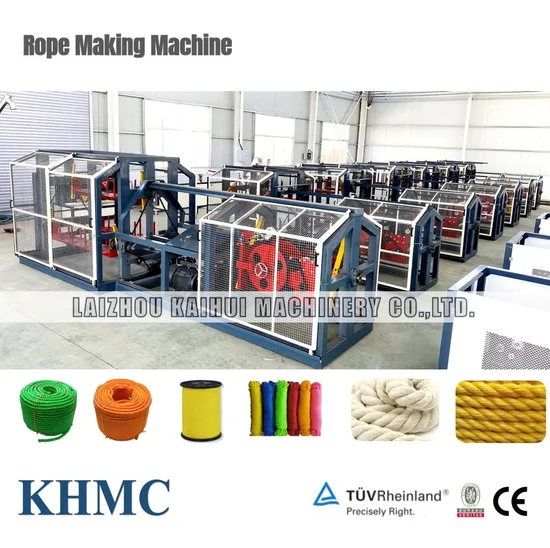 The machine is a professional rope making machine, which integrates the processes of making a strand and make 3/4 strands rope. It can work as an auxiliry machinery of pp twine and pet hdpe monofilament extrusion lines, or as a seperate machine using other materials to make ropes.