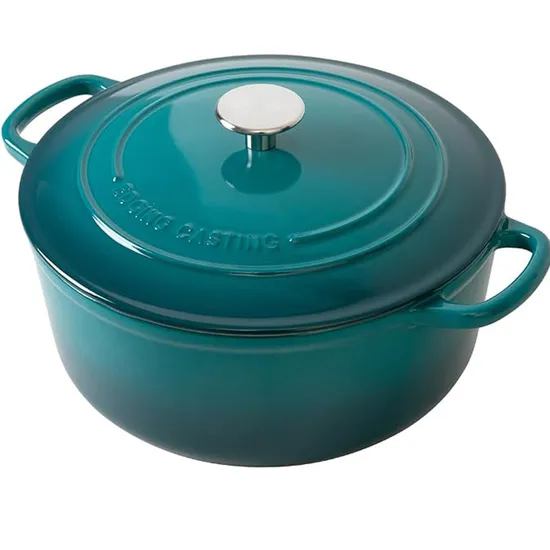 EDGING CASTING A variety of colors for you to choose, there is always one for you. It is also the best choice as a gift for friends and relatives. With this enamelled cast iron pot, you can get all the meals you like. What are you waiting for? Get it and own it! | Wide cast iron handle It is suitable for all kinds of cooking methods, such as frying, stewing, baking, braising, etc. Also suitable for a variety of stoves and ovens. Oven safe up to 500°F. It can be used in any kitchen scenes. Bring you comfortable and pleasant cooking experience. | Self circulation water locking The pot cover is thick and well sealed, which makes it difficult to lose water. The "self circulating water drop" design of the pot cover can enhance the water locking function and keep the original flavor. |