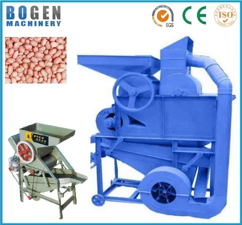 Bogen brand series peanut shelling machine according to JB / T5688.1-2007 "peanut sheller technical conditions" design and manufacturing, in line with JB / T5688.2-2007 "peanut sheller test method" standard. Shelling by suspension sleeve, wind primary, secondary gravity separation cleaning, peanuts after the selection can be automatically loaded sacks, it has a simple and compact structure, flexible operation, easy maintenance, high shelling efficiency, performance high, saving labor, etc., are fully applicable to individual households peanut processing, grain, oil and food processing industries peanut sheller job. The majority of flower production areas and the ideal equipment for individual specialist wealth.