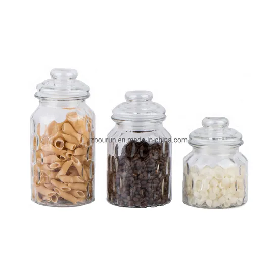| Description | Embossed Glass Food Storage Canister/Glass Jar/Glass Bottle/with Glass Lid |