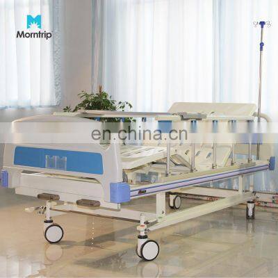 Product DescriptionThis two-function hospital bed has back-rest and leg-rest and. During daily treatment and nursing, the position of the patient's back and legs are appropriately adjusted according to the needs of the patient or nursing need, which helps to relieve the pressure on the back, legs and promote blood circulation.This bed has a fixed height, which is not adjustable. If customers need height-adjustable beds can check Model A01 and A02.Headboard/FootboardABS bedboardSide railsCollapsible aluminum alloy guardrailsBed surfaceHigh quality large steel plate punching bed frame L1950mm x W900mmBrake systemSide brake central control castersCranksABS fold hidden cranksBack lifting angle0-75°Leg lifting angle0-45°Max load weight≤250kgsFull Length2200mmFull width930mmHeight of the bed surface500mmOptionsMattress, IV pole, Drainage bag hook, bedside locker, overbed tableDetailed ImagesABS Headboard & Footboard1. Both the headboard and footboard are equipped with anti-collision strips, which can reduce the impact of the collision while transportation.2. ABS fold hidden cranks at the bed tail, effortless for caregivers to adjust patients' position.Safety Side Rails1. Aluminum alloy and stainless steel guardrails can prevent patients falling off the hospital beds, which can keep patients move safely. 2. The side rails are collapsible, can be folded on the bedside when caregivers offering caring.Brake System1. Side brake system controls 4 mute casters.2. 125mm mute casters can be locked once we step on the brake, very effective for emergencies.Our AdvantagesProduction Advantages1. Production base over 5000 m2, over 10000 m2 new factory under construction.2. More than 100 skilled workers and semi-automatic production lines, which lead to a short lead time: 10 days for a 40HQ.R&D and QC Advantages1. Our R&D team has more than 15 years of experience in the hospital bed industry, can solve various product design problems according to customer needs.2. Quality control almost goes through the entire production process. Every part of the bed must be 100% examined before handing it over to the next production process.Overseas Warehouses1. We have warehouses in both Korea & Russia, which can deliver fast to customers there. 2. Also can help us deal with after-sales issues faster.After-sales Advantages1. One year warranty, free spare parts.2. Guarantee 5 years repair, offer spare parts with cost price. 10% off new beds change.3. 10 years spare parts supply guaranteed.Related Products$360 - $ 380 Pieces10 Pieces (MOQ)$490 - $ 515 Pieces10 Pieces (MOQ)$360 - $ 380 Pieces10 Pieces (MOQ)CertificateISO 13485: 2016ISO 9001: 2015CE CertificatePacking&ShippingInner PackingEvery part of the bed is packed or wrapped with bubble bags, in case the transport collision damages the components.Outer PackingOuter cartons are wrapped with PET strapping, effectively avoid packages to be deformed and damaged.Container LoadingBefore loading into the containers, every package is packed under high standards and must go through strict quality control processing. Company IntroductionEstablished in 2015, Morntrip is a professional manufacturer of disposable non-woven products. Covering an area of 50,000 square meters, our factory is located in Xiantao city, the most famous place of domestic non-woven industry, which also has the most complete supply chain system and the richest production experience of non-woven products in China. Xiantao is only two hours' drive away from Wuhan port, the biggest inland port of China, which is very convenient and economical for FCL transportation.Focused on non-woven product manufacturing, R&D, and marketing for more than 20 years, we have developed into a large-scale manufacturer. We have integrated a complete product supply chain, which including raw material production, finished product processing, packaging, and transportation. More than 20 years’ production experience also made us become one of the most famous KOLs in this field.We are certified with China medical device production license, CE and ISO 13485 by TUV Rheinland. Our main products including disposable medical masks, coveralls, surgical gowns, lab coats, doctor caps, bedsheets, shoe covers, and other kinds of protective equipment. We also produce non-woven fabrics by ourselves, including spun-bond, melt-blown, and SMS non-woven.In order to stay competitive in this field, we have been always improving ourselves:1. Started operating Morntrip brand in 2015, which has become a famous export trading company in Wuhan exporting field.2. In 2017, we imported a non-woven fabric production line of SMS from Japan, which can produce both spun-bond and melt-blown polypropylene.3. Over 30,000m2 modernized new dust-free workshops were put into production in 2018, which made our total production bases more than 50,000 m2, total employees over 300.4. In 2019, our annual sales reached 200 million RMB, non-woven fabric annual output over 7,000 tons, and can deliver finished products over 30 pieces of 40HQ container every month.5. In 2020, we were designated suppliers to help prevent the pandemic in Hubei.6. In 2021, Morntrip Supply Chain Company was established, we signed cooperation agreements with well-known enterprises in China. New products like hospital beds and industrial protective gloves have been added to our new business plans.Our customers are from all over the world, such as North & South America, Europe, Middle East, East Asia, South East Asia, and so on. We always put our customers in first place during our cooperation and provide them with the best products and services. We will keep learning and innovating in the future. We also believe that Morntrip will keep growing up and go further with our customers together.
