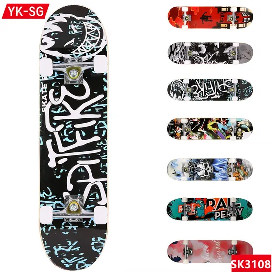 Skateboard, Skateboard spare parsts like trucks, PU wheel, PU bushing, Griptape, nuts and screws.