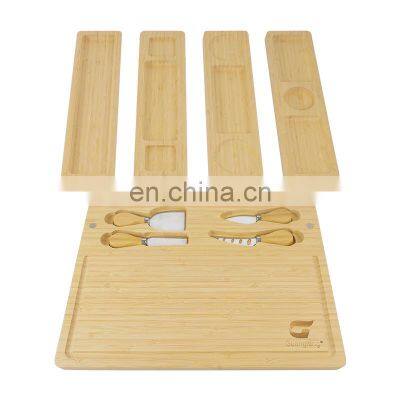 Natural Bamboo Rectangle Large Custom Cheese Board With Magnet Tray