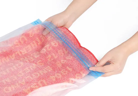 2. Sealing your vacuum storage bag: Run your fingers across the zipper to the opposite end, repeat to ensure the zipper is tightly locked.