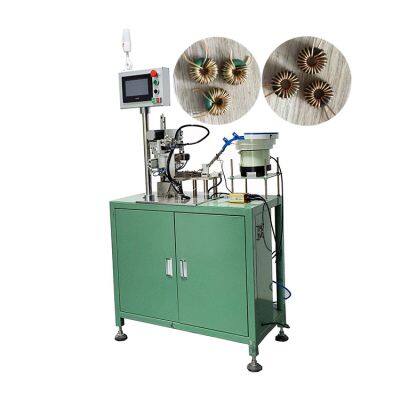 The fully automatic magnetic ring winding machine is a fully automatic high-end winding machine developed for magnetic ring common mode inductors.This model can help the production achieve the requirements of high output and high quality products without high cost. It is a fully automatic winding machine designed for micro magnetic cores,thin wires, and magnetic rings with small inner and outer diameters, which are difficult to pick up and place manually.Its main functions include: automatic feeding of magnetic rings,automatic feeding of wires,automatic winding,automatic wire cutting,automatic wire arrangement,etc.The production process does not require manual participation,which greatly increases the efficiency of production workers.At the same time,it ensures the stable quality of the produced magnetic cores.The control system with PLC and human-machine interface as the core makes the control circuit simple,the operation simple, the performance stable,and retains the usual ease of use of the machine.