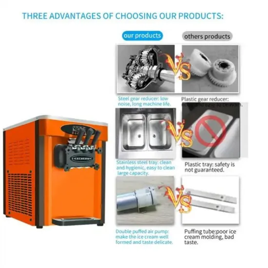 1.Hot sell model for soft ice cream shop and frozen yogurt franchise 2.Different colors to choose, yellow, pink, orange,blue are available. 3.Three flavours, much easier to match different customers' preference. 4. Color Panel body, looks modern and clean. Very suitable for restaraunt and etc. 5. Stable control and simple operation. 6.High capacity, 22-28L every hour. 7.Frozen cylinder automatic alarm protection reminder 8.Pre-cooling and air pump function can add according to customer requirement