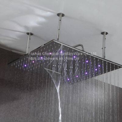 1. This ceiling mounted square shower head has THREE amazing functions, mist spray, waterfall shower and rainfall shower.
