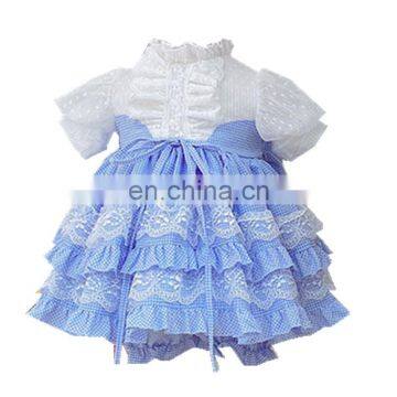 | summer Spain Girls Blue Sweet Princess Dress Puff Sleeve Dress Kids Dresses for Girls Kids Party Wedding Quality Dress panty