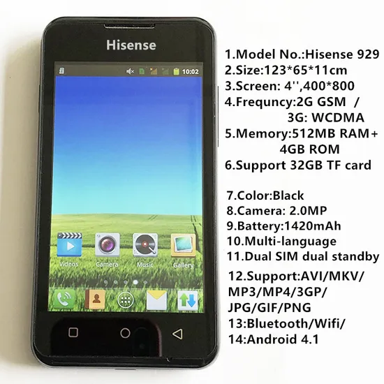 1*CPU: MSM8625 2*System: Android 4.1 3*ROM: 512M ,RAM: 4 GB 4*Phone Size:123*65*11cm 5*Battery capacity:1420mAh | 6*Resolution: 400*800 8*Network mode: 2G SM / 3G WCDMA |
