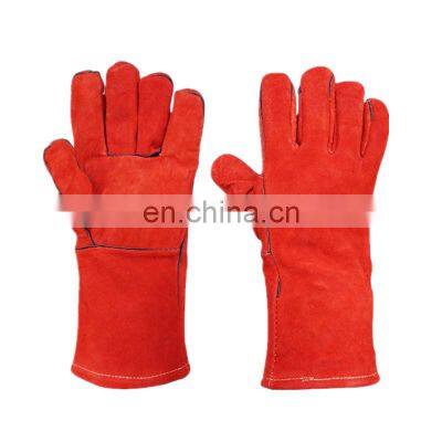 Anti-slip Industrial Cow Split Cut Resistant Leather Long Safety Working Welding Gloves For Welder
