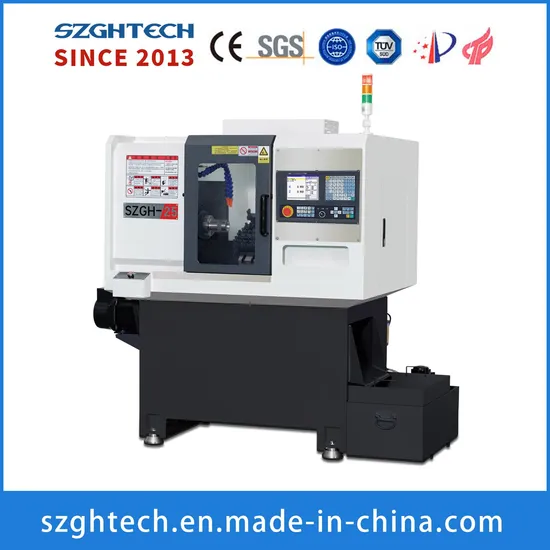 SZGH-25 mini CNC lathe adopts an advanced numerical control system, which can realize precise processing control. It has a highly rigid structure, which ensures stability and deformation resistance during processing, thus achieving high-precision machining. The lathe is also equipped with automatic tool changeover and automatic loading functions, which improve production efficiency.