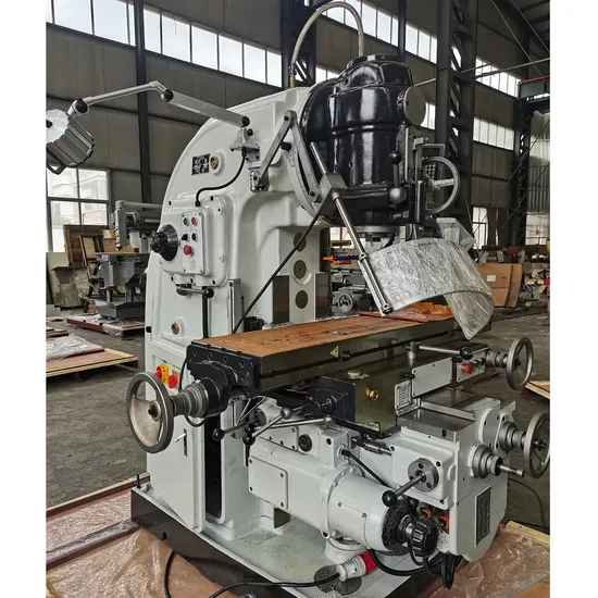 The machine can down milling and up milling.Table can rapid feed in cross, longitudinal, vertical directions, which can improve work efficiency.Cross and vertical feed of table is controlled by only one handle.Main drive parts and bearings are automatically lubricated by oil pump, an indicator is set to check the lubricant conveniently. Hand lubrications are set in obvious positions.