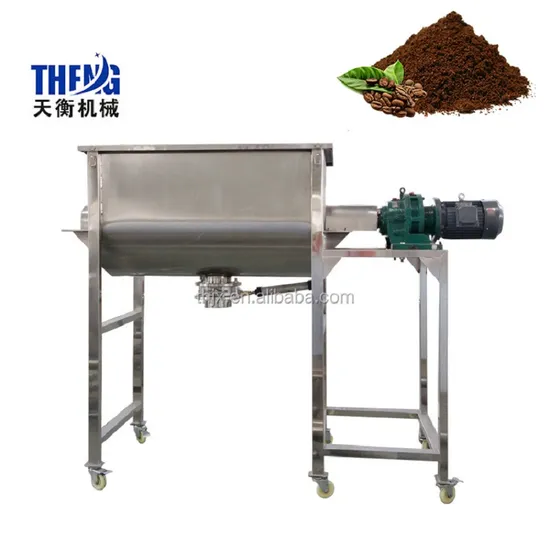Product Description This is a horizontal Ribbon Blender ,designed to mix all kinds of dry powder .It consists of one U-shaped horizontal mixing tank and two groups of mixing ribbon: outer ribbon displace the poweder from the end to the center and inner ribbon move the powder from the center to the ends .This counter-current action results in homogeneous mixing.The cover of the tank can be made as open in order to cleaning and change parts easily.