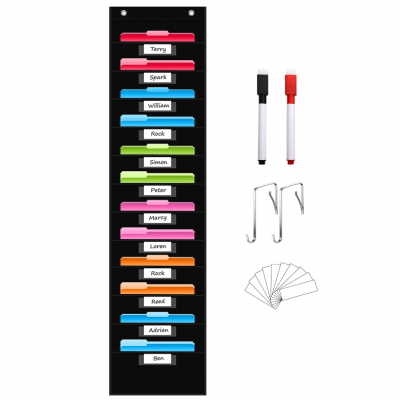 ✿【You Will Get】Including 1piece of hanging file pocket chart with 12 pockets, 12 pcs of dry-erase white labels, 2 pieces of door hooks and 2 pieces of dry erase black markers.