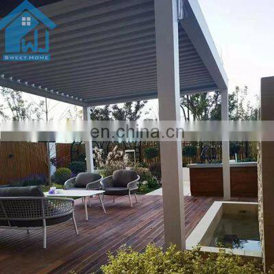 Product NameModern design bioclimatic motorized aluminium louvered pergolaControl wayMotorized with remote controlFunctionWaterproof ,sunshade,windproof ,snowproof, house space extendingApplicationVilla,balcony ,garden ,backyard ,roof ,restaurant,decking ,swimming pool and so onWind Resistant180-220 KM/HSnow Loading60-100cmSizePopular standard size:3x3x2.5、4x3x2.5、5x3x2.5、6x3x2.5 or can be customizedOther related materialsSide screen/curtains, side shutter ,LED lights,heater ,fans,glass doors,outdoor furnitureInstallationWe will provide very detailed drawing and video for the installationOthers1.MOQ:1 set, we welcome small order 2.Production: we are factory , we can provide 10-15days fast production time 3.Warrenty:10 years4.Color:White, Grey, Black, or customized colors availableFAQQ1. Is this pvc folding pergola easy to install?A: We have the assembly manual instruction specifically made according to your project site. It's a DIY product designed to be easily assembled and we can provide installation video.Q2. How long is your products' warranty?A: All our products have 10 years warranty.Q3:How to guarantee the quality of the products?A:We have our own QC team to control the products quality for all our clients'orders before loading.Q4. How can i get a price of needed pvc folding pergola?A: Please give the exactly size and quantity of your required pvc folding pergola. We can give you a detail quotation and free design solution based on your requirements.Q5.I am a small wholesaler, do you accept small order?A: It's no problem is you are a small wholesaler, we would like to grow up with you together and our MOQ is 1 set.Q6. Is my first time to export from China, what if i have no experience?A: Don t worry, we have very professional sale will guide for and we can provide one stop solution including deliver the door to your home address with customs.Q7. What kind of payment terms would you accept?A: We usually accept T/T, L/C, Western Union, etc. If you prefer other payments terms, please feel free to discuss with us.Q8. What if i meet the problem after installing and using this pvc folding pergola?A: As our principle is our business had been built on hoes & backed by customer service.we are verified supplier in Alibaba. com and our can provide 10 years warranty, so if you meet any problem for using this pvc folding pergola,welcome to contact.