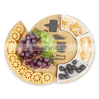 Bamboo Meat and Cheese Board Serving Platter Cheese Board and Knife Set Charcuterie Board Set with Accessories with 3 Bowls