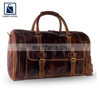 Buff Antique Fittings Made Superior Quality Fashion Leather Men Duffel Bag for Global Purchasers
