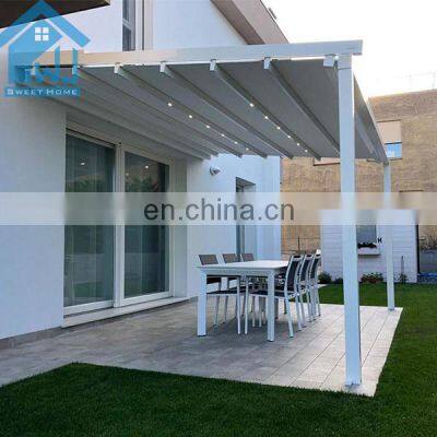 Product NameModern design bioclimatic motorized aluminium louvered pergolaControl wayMotorized with remote controlFunctionWaterproof ,sunshade,windproof ,snowproof, house space extendingApplicationVilla,balcony ,garden ,backyard ,roof ,restaurant,decking ,swimming pool and so onWind Resistant180-220 KM/HSnow Loading60-100cmSizePopular standard size:3x3x2.5、4x3x2.5、5x3x2.5、6x3x2.5 or can be customizedOther related materialsSide screen/curtains, side shutter ,LED lights,heater ,fans,glass doors,outdoor furnitureInstallationWe will provide very detailed drawing and video for the installationOthers1.MOQ:1 set, we welcome small order 2.Production: we are factory , we can provide 10-15days fast production time 3.Warrenty:10 years4.Color:White, Grey, Black, or customized colors availableFAQQ1. Is this pvc folding pergola easy to install?A: We have the assembly manual instruction specifically made according to your project site. It's a DIY product designed to be easily assembled and we can provide installation video.Q2. How long is your products' warranty?A: All our products have 10 years warranty.Q3:How to guarantee the quality of the products?A:We have our own QC team to control the products quality for all our clients'orders before loading.Q4. How can i get a price of needed pvc folding pergola?A: Please give the exactly size and quantity of your required pvc folding pergola. We can give you a detail quotation and free design solution based on your requirements.Q5.I am a small wholesaler, do you accept small order?A: It's no problem is you are a small wholesaler, we would like to grow up with you together and our MOQ is 1 set.Q6. Is my first time to export from China, what if i have no experience?A: Don t worry, we have very professional sale will guide for and we can provide one stop solution including deliver the door to your home address with customs.Q7. What kind of payment terms would you accept?A: We usually accept T/T, L/C, Western Union, etc. If you prefer other payments terms, please feel free to discuss with us.Q8. What if i meet the problem after installing and using this pvc folding pergola?A: As our principle is our business had been built on hoes & backed by customer service.we are verified supplier in Alibaba. com and our can provide 10 years warranty, so if you meet any problem for using this pvc folding pergola,welcome to contact.