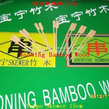 BAONING BAMBOO WOOD Teppo skewer products production: white teppo skewer, paddles skewer, the hot word teppo and paddles skewer, etc., the use of fresh and processing method to keep the bamboo's inherent green epidermis and toughness. Specification: 9cm, 15cm, 18cm, 20cm, 24cm,Hot word in the product and in accordance with the needs of customers, such as manufacturer's name, corporate LOGO and other. All products are strictly in accordance with the standards promulgated by the State Ministry of Health to the implementation of production, and in accordance with the relevant provisions of the Entry-Exit Inspection and Quarantine Bureau. Autonomy in 2003, exported to Japan, has customers praise, please new and old customers.