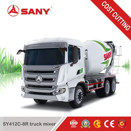 Sany truck mixer SY412C-8R with 12 cubic meter mixing capacity is equipped with ultra-high strength integrated auxiliary frame, ensuring its stability and high strength. The 12 cubic meter truck mixer can adapt to varied harsh conditions and improves its service life.